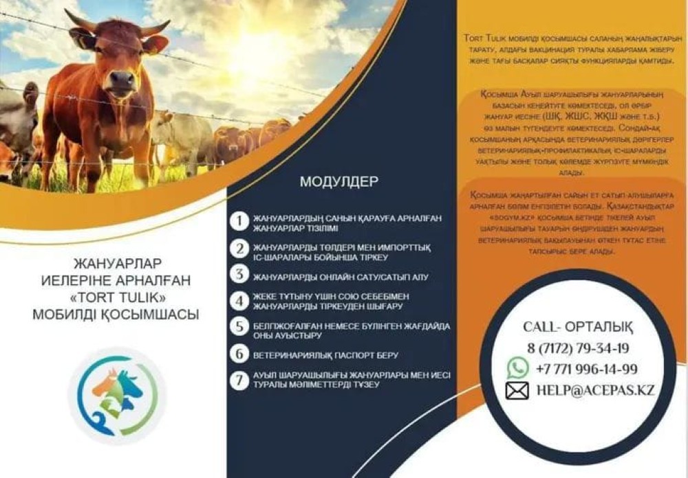Жануарлар иелеріне арналған «TORT TULIK» мобилді қосымшасы